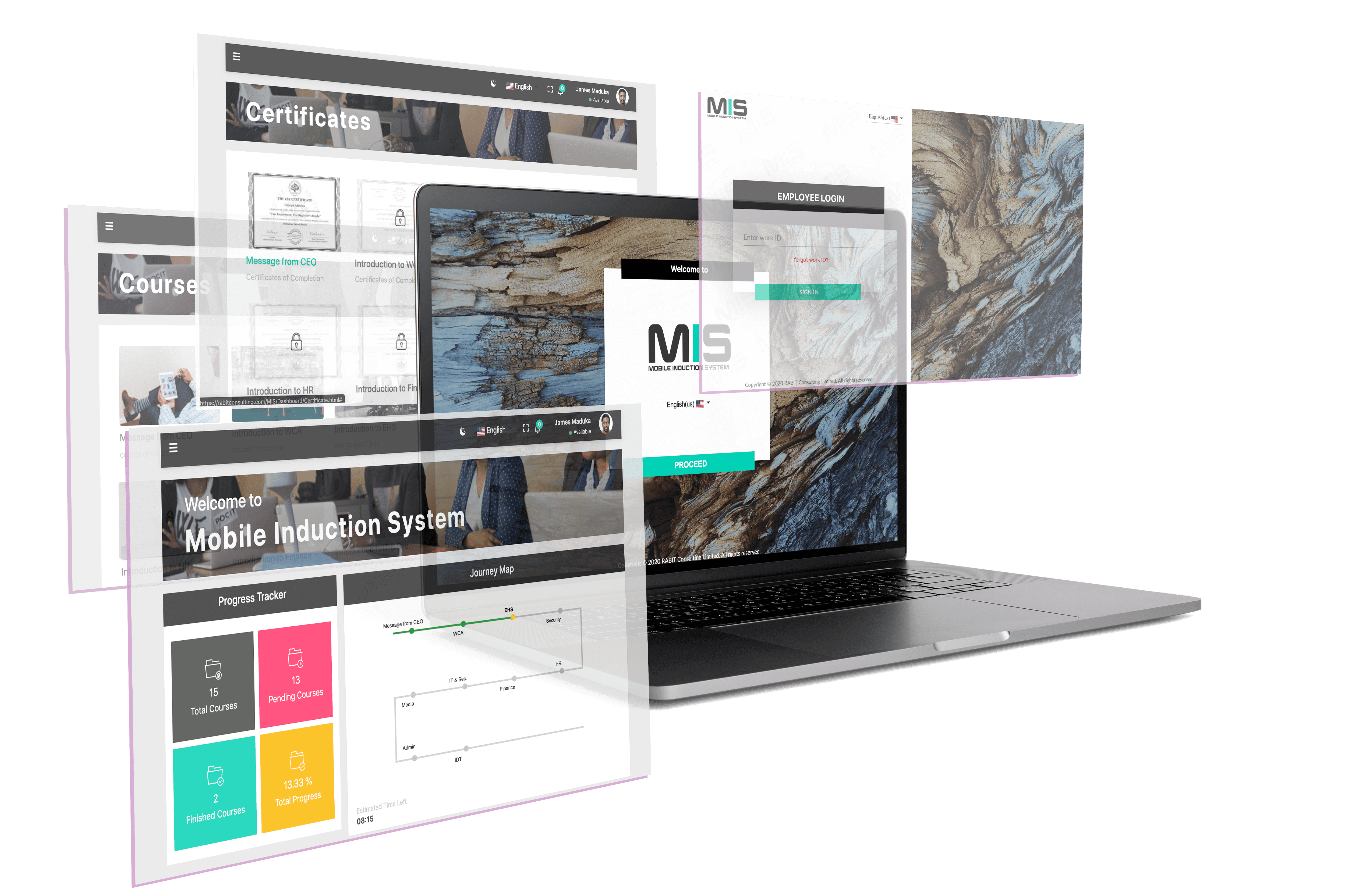 This is a Mobile-first responsive induction portal designed to provide seamless, convenient, and remote access to automated organization training and induction. It is an all-in-one suite tailored to ensure inductees get easy and secured access to training, certification & organizational support anytime, everywhere